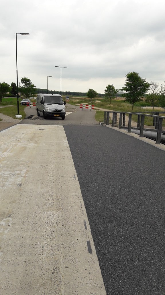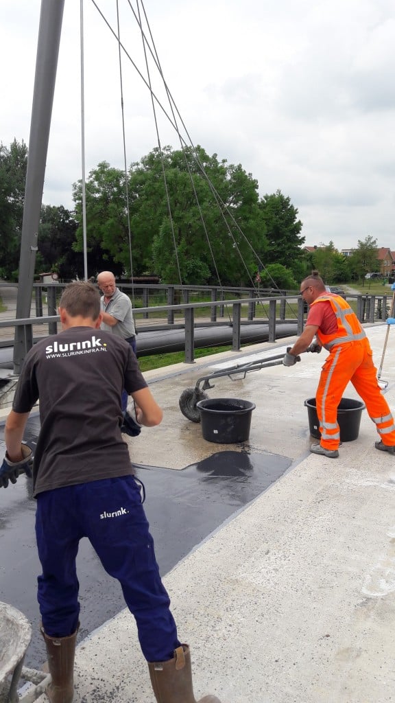 Slurink heeft in de gemeente Beuningen 220 m2 slijtlaag vervangen. De restanten van oude slijtlaag zijn verwijderd waarna het betonnen brugdek is gestraald.