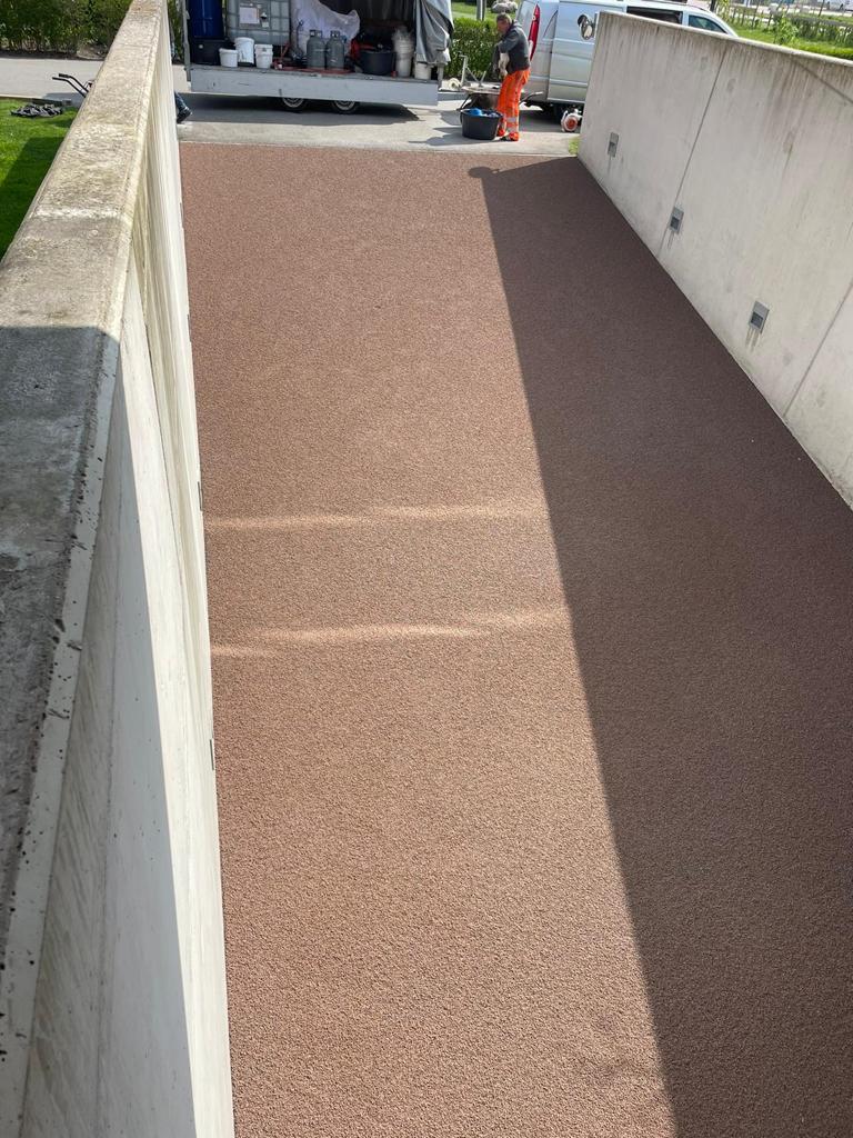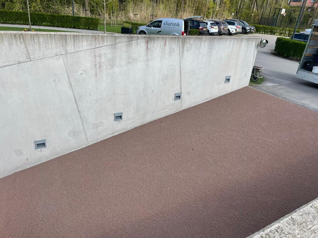 Na het aanbrengen van de slijtlaag heeft Slurink een instrooilaag met amaril steenslag aangebracht. Deze laag draagt bij aan de duurzaamheid en veiligheid van de hellingbaan, doordat de steenslag zorgt voor extra grip. Dankzij deze maatregelen is het appartementencomplex De Havenmeester in Numansdorp weer veilig en toegankelijk gemaakt voor de bewoners.